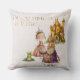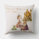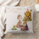 Este travesseiro decorativo encantador apresenta um tema clássico de histórias folclóricas e de contos de fadas sobre um fundo cor-de-rosa suave. A ilustração apresenta uma princesa e um príncipe sapo à direita, com um rei e seu castelo à distância. A frase "Uma vez por vez" é impressa entre as ilustrações em uma fonte de ouro branco.