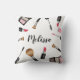 Este travesseiro é excelente para pessoas que gostam de maquiagem e da indústria da beleza. Este travesseiro apresenta a ilustração dos produtos de maquiagem de Destei, incluindo batom, pincéis de maquilhagem, paletas, lábios brilhantes e rímel. Os itens de maquiagem são colocados em volta do travesseiro deixando espaço no meio para um nome personalizado.