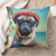 Almofada Pug on Beach, presente de verão para o amante do c
