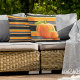 Linda laranja contemporânea Pumpkin em um brilhante padrão de faixas laranja, verde limão, branco e preto horizontal design. Uma almofada quente divertida ao ar livre para enfeitar o seu pátio ou a varanda da cabine e para se acalmar durante o outono, o feriado de Ação de Graças e o Halloween.