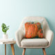 Este travesseiro que faria uma maravilhosa adição à sua decoração de outono mostra o meu trabalho artístico original criado em pastéis suaves que pintam três abóboras de laranja bonito em uma área de jardim de outono.