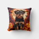 Um filhote fofo e fofo está cercado por abóboras esculpidas sob luz de lua brilhante no outono, com uma atmosfera festiva de Halloween, com morcegos e um misterioso pano de fundo florestal.