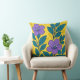 Almofada Purple Flowers & Teal Leaves on Yellow Background