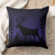 Um travesseiro de decoração de inverno, xadrez de búfalos, vermelho e preto, com uma silhueta preta de uma grande estátua de formigueiro numa floresta tranquila de pinheiros de madeira, com um fundo de xadrez de búfalos vermelho e preto.