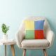 Travesseiro decorativo de quadrados vermelhos azuis amarelos modernos. Quatro cores que representam os quatro elementos da natureza!