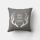Seu pequeno garoto vai adorar este travesseiro divertido! Este design apresenta um fundo texturizado cinza, chifres e tipografia personalizada. Adicione a data de nascimento do seu filho para completar a aparência.