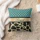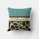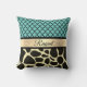 Um padrão quatrefoil em um pano de fundo turquesa junto com uma fita de ouro para personalização e abaixo que é um impressão de girafa na moda para vibrações exóticas de animais.
