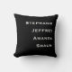Este simples e minimalista travesseiro decorativo quadrado, com espaço para quatro nomes, é um presente maravilhoso para uma nova festa de casa ou de aquecimento doméstico - ou para si próprio, é claro! presente de manutenção do excelente para novos pais ou avós. É preto e branco, mas fácil de mudar de cores. O dorso é preto sólido. Todos os Direitos Reservados © 2024 Alan & Marcia Socolik