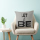 Grande cartaz chunky em travesseiro decorativo com a citação "Que Seja". O design é impresso na frente e no verso em letras pretas em fundo de cinza médio. Decoração perfeita para o estilo doméstico ou mesmo para a praia, o chalé, a cabana ou o tipo boho.