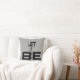 Grande cartaz chunky em travesseiro decorativo com a citação "Que Seja". O design é impresso na frente e no verso em letras pretas em fundo de cinza médio. Decoração perfeita para o estilo doméstico ou mesmo para a praia, o chalé, a cabana ou o tipo boho. Vivendo Simples.