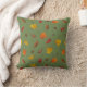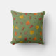 O travesseiro decorativo do outono apresenta lindas folhas de outono em laranja, amarelo, vermelho e marrom sobre fundo verde escuro