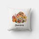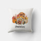 Adorável travesseiro decorativo de Gnomo de outono/outono celebrando a estação de picles de abóbora. Design de caipira entre duas abóboras, segurando uma bebida quente de picante de abóbora. O nome no travesseiro decorativo é personalizável com o seu.