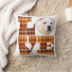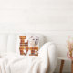 Lindas cores do outono definem esse Xadrez Vermelho Laranja com Amor Dizendo Foto Travesseiro decorativo. A palavra "AMOR" sobressai em caracteres negros com um padrão de xadrez. Uma foto é substituída pelo "O" e pode ser um animal de estimação, casal, filho, etc. A parte traseira do travesseiro permite a personalização do texto. Fotografia e design ©Vann-Horn Creative Photo & Designs.