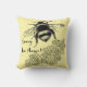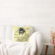 Querida, estou em casa! Travesseiro quadrado decorativo com uma abelha e um padrão em forma de favos de mel num fundo de cor de mel. O inverso é a cor correspondente sem o design.