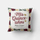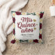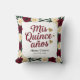 Celebre o seu marco especial com este travesseiro decorativo decorativo de Mis Quince Años maravilhoso! Apresentando rosas ricos de vermelho e marfim que enquadram a elegante caligrafia, corações com aspecto brilhante de ouro, e nome e data personalizáveis — é uma manutenção perfeita para uma celebração da Quinceañera. Um belo presente para a aniversariante ou um toque de na moda para a decoração de festas que ela pode apreciar por anos.