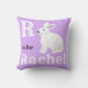 R é para Rachel Travesseiro decorativo da menina A parte de trás tem 9 coelhos O nome pode ser mudado para qualquer nome começando com R