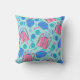 Travesseiro chique e colorido para quem ama pickleball. O design tem raquetes e bolas de pickleball azuis com algumas raquetes em uma bolsa de cordão rosa. O design de pickleball pode ser encontrado em outros itens da minha loja, PageCreativeDesigns.
