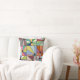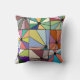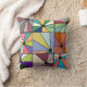 Este travesseiro decorativo tem um desenho abstrato que é feito de nove quadrados com um círculo e "raios" saindo do círculo em muitas cores diferentes.