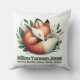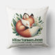 Celebre a chegada da sua pequena dama com esta almofada de estatísticas de nascimento, que apresenta uma imagem rústica e ilustrativa de um adorável filhote de raposa sonhando feliz em uma cama de folhas verdes exuberantes. Personalize com o nome do bebê, data e hora de nascimento, peso ao nascer e comprimento ao nascer. O verso mostra o mesmo desenho.