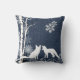 Se você ama as pássaros, raposas, natureza e vida selvagem você vai adorar esse travesseiro bonito em preto, azul e branco com raposas brancas de silhueta sobre um fundo de céu azul escuro de inverno com grandes e pequenos flocos de neve e pássaros brancos.