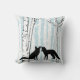 Esta bonito natureza e travesseiro decorativo de vida selvagem é um presente excelente para aquele que você ama! Apresenta duas raposas da silhueta preta na frente de uma floresta de pássaros brancos com o céu azul mostrando através das árvores. A maior árvore de pássaros tem um coração esculpido nele que tem iniciais que você pode personalizar. O travesseiro atrás tem as árvores de pássaros brancos, céu azul, e um grande coração que combina com o menor na frente com uma área que você pode adicionar seu nome e a de alguém que você ama!