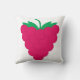 Do you like fun throw pillows? This throw pillow has a graphic of a pink raspberry with a green stem.