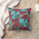 A vibrant geometric quilt of red, teal, purple, and gray triangles—bold symmetry meets tactile artistry
