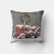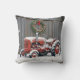 A bright red farm tractor in a blanket of snow, perfectly paired with a festive Christmas wreath on a charming rustic wooden barn, captures the essence of holiday cheer and the beauty of winter