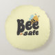 Esteja seguro, design de abelha de dormir em um travesseiro redondo. As costas têm um padrão de abelhas feliz com abelhas, mel e flores. Perfeito para o Nursery para o seu doce bebê. Também um doce presente para dar a uma nova pessoa neste planeta. Disponível em cores diferentes e você também pode mudar para a cor de fundo preferencial na Ferramenta Design do Zazzle. Aqui mostrado com um fundo amarelo pálido. Este design também pode ser transferido para outros produtos pela Ferramenta de transferência do Zazzle