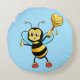 Almofada Redonda Abelhas de Mel Bonito com Coração em Azul Claro