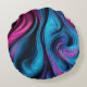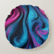 Almofada Redonda Abstrato de-Fluido Moderno - Azul de Arte e Rosa-