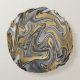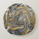 Almofada Redonda Abstrato De Óleo Marmoreado Preto, Branco E Dourad