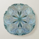 Almofada Redonda Abstrato Flor Fractal Teal Cinza Azul Branco