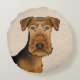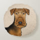 Almofada Redonda Airedale Terrier Cute Cartoon Cabeça Em Beige