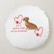 Featuring a sweet dachshund design with bold red lettering and playful heart and paw accents, this pillow: