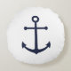 Travesseiro náutico minimalista moderno, com âncora azul marinho sobre fundo branco. Perfeito como decoração da casa de praia, presente de inauguração e muito mais.