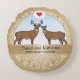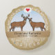 Celebre o aniversário de casamento de ouro do casal que ama a natureza com este presente personalizável! Ramos brancos e pássaros em um fundo dourado rodeiam um casal de cervos-de-cauda-branca que estão pensando um no outro com um coração. Dois nomes, número de anos juntos, ano do casamento e ano atual são apresentados perto do centro e podem ser personalizados. Perfeito para um casal amoroso que também ama o ar livre.