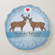 Celebre o aniversário de casamento de safira do seu casal favorito que ama a natureza com esta almofada personalizável! Ramos brancos e pássaros em um fundo azul rodeiam um par de veados-de-cauda-branca que estão pensando em um coração. Dois nomes, número de anos juntos, ano de casamento e ano atual são apresentados perto do centro e podem ser personalizados. Perfeito para um casal amoroso que também ama o ar livre.
