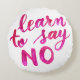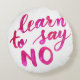 Aprenda a não dizer nenhuma citação inspiradora. Citação inspiradora rosa escrita à mão sobre travesseiros redondos.