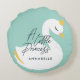 Um travesseiro de decoração da princesa. Aqua verde azul esverdeado, giro elegante e bonito design de crianças de cisne. Cor-de-rosa e design aqua.