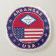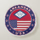 Crachá de Arkansas com pavilhão de Arkansas e bandeira de EUA cores, forma arredondada. Emblema de Arkansas. Selo de Arkansas. Coleção dos Estados Unidos.