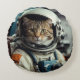 Almofada Redonda Astronauta de Gato cinza no Espaço Exterior