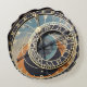 photography in black blue and orange. detailed color photography of a historical, medieval landmark, an old astronomical clock in prague in europe with blue, orange, and brown, astrology signs and roman numerals. photography in blacks blues and oranges.