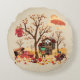 Autumn e Fall Elements e cenário com antiga casa de fazenda assombrada e assombrada e fantasma contra colinas rolantes de ouro e árvores de outono com sol amarelo ou lua com nuvens de laranja e guarda-chuva, criança com fantasia de Halloween, tela de cinema de horror assustado, pipoca, cartazes de cinema, abóboras de colheita, doces, cogumelos, quedas, futebol, blina e suéter de outono e inverno Turquia de ação de graças.