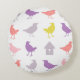 Almofada Redonda Aves de Pastel, rosa e púrpura, com Aves