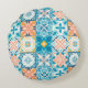 Almofada Redonda azulejos ornamentados em azul e laranja