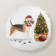 Almofada Redonda Beagle Engraçado Cachorro de Natal com Árvore