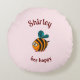 Travesseiro redondo com abelha fofa sobre fundo rosa