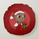 Almofada Redonda Bebê afro-americano bonito com chapéu de Papai Noe