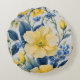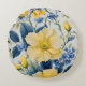 Lindas flores amarelas e azuis cobrir neste travesseiro decorativo redondo. Brilhante e alegre, com um olhar francês para o país.